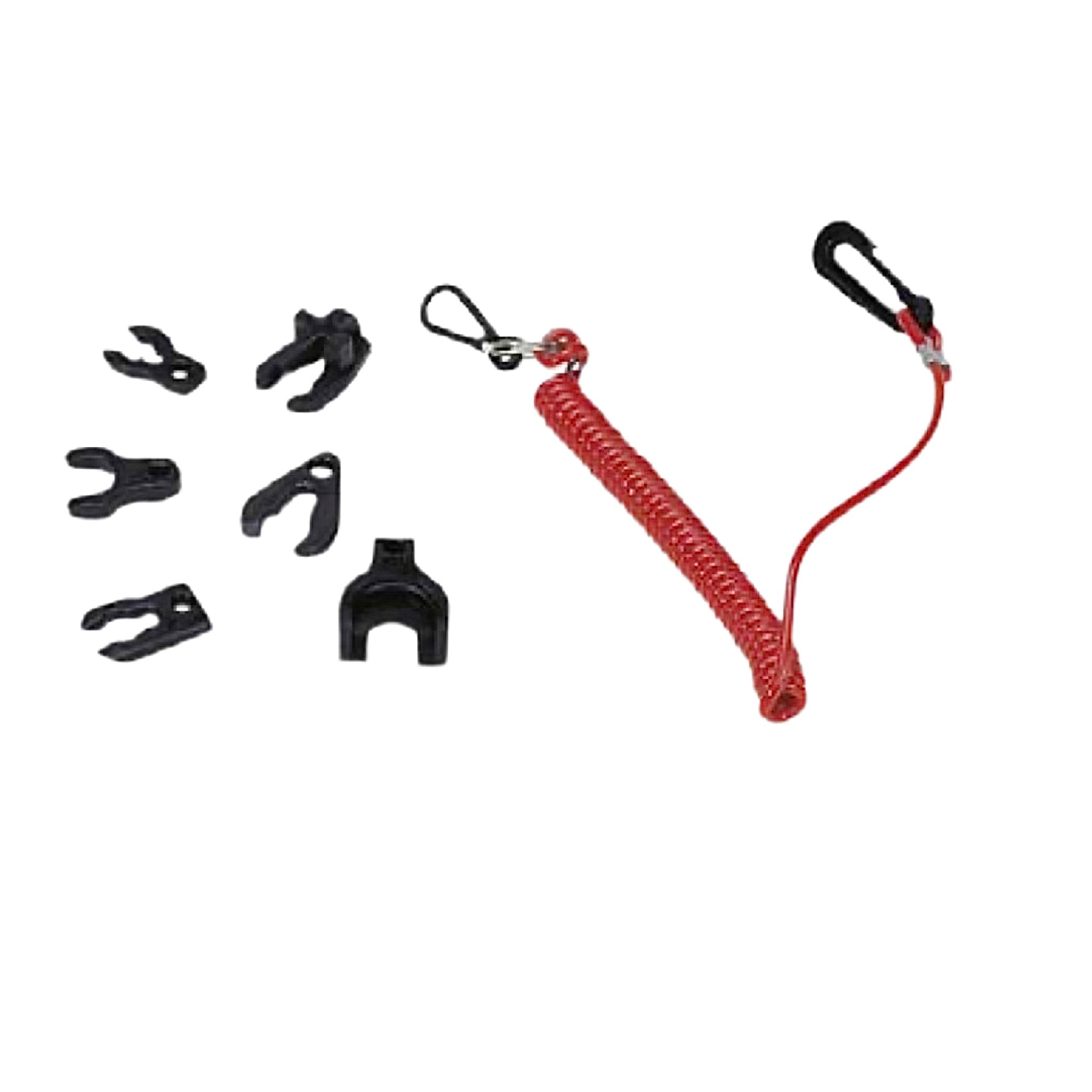 Chiavetta di sicurezza complete di laccio e moschettone, per spegnere il motore fuoribordo nel caso si venga sbalzati in mare.