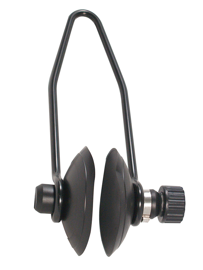 Cuffia lavaggio motori fuoribordo e gruppi poppieri, con afflusso di acqua da un lato, con attacco rapido tipo giardinaggio. Forcella in acciaio plastificato con ventose tonde in gomma Ø mm.90