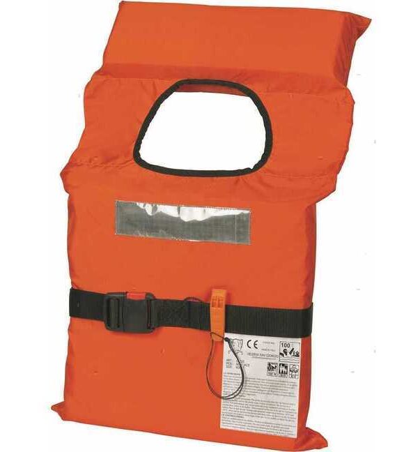Giubbotto di salvataggio modello NADIR completo di cinghia con fibbia, nastri riflettenti e fischietto.