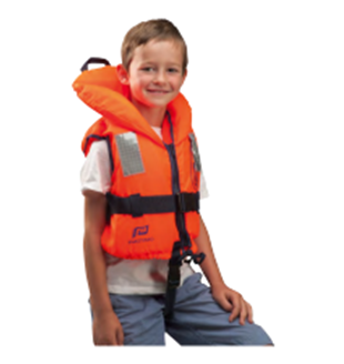 Giubbotto di salvataggio 100N, in schiuma di polietilene. Collo avvolgente per un maggiore sostegno della testa, sistema di segnalazione con fasce retroriflettenti e fischietto. Chiusura con cerniera, nastro con fibbia a sgancio rapido, cinghia sottogamba e maniglia di recupero. CE EN ISO 12402-4/A1 2010